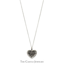 Sterling Silver "Inner Beauty" 15mm Wide Heart Shaped Necklace with Diamond Accent on Adjustable Chain