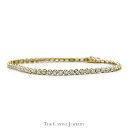 7 Inch 1cttw Illusion Set Round Diamond Link Tennis Bracelet in 10k Yellow Gold