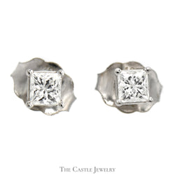 1/2cttw Princess Cut Diamond Stud Earrings in 18k White Gold