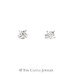 Round Diamond Stud Earrings in Square Illusion Mounting