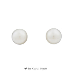 7mm White Pearl Stud Earrings in 14k Yellow Gold Butterfly Back Posts