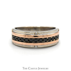 Men's 1/2cttw Black Diamond Wedding Band in Two Tone 10k White & Rose Gold
