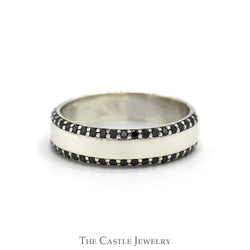 Men's Black Diamond Neil Lane Designer Wedding Band in 14k White Gold