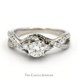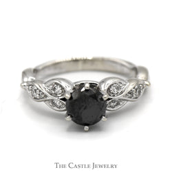 Black Diamond Solitaire Engagement Ring with Round Diamond Accents in 10k White Gold Twisted Mounting