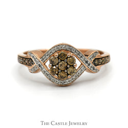 Cocoa Diamond Cluster Ring with White Diamond Accented Interweaving 10k Rose Gold Setting