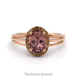 Oval Cut Pink Tourmaline Ring with Cocoa Diamond Halo in 14k Rose Gold