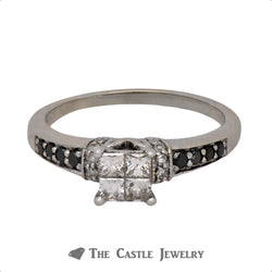 Princess Cut Diamond Cluster Engagement Ring with Black Diamond Accents