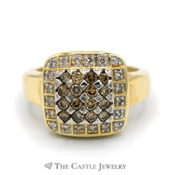 .50cttw Brown and White Round Brilliant Cut Diamond Cluster Ring Set in 14k Gold