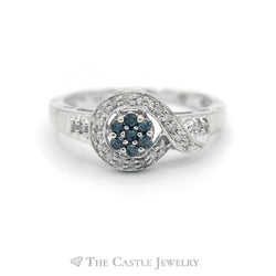 .25CTTW Blue and White Diamond Swirl Cluster Ring in 10KT White Gold