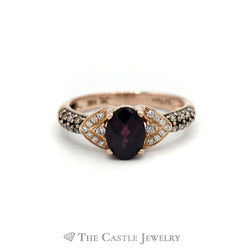 LeVian Oval Rhodolite Garnet Ring with White and Chocolate Diamond Accents in 14KT Strawberry Gold