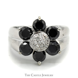 2.5cttw Black and White Diamond Flower Cluster Ring in 10k White Gold