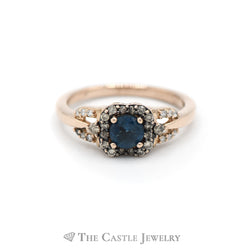 Oval Cut Blue Topaz Le Vian Designer Ring with Chocolate & White Diamond Halo in 14k Rose Gold