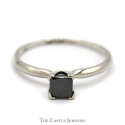 3/4ct Princess Cut Black Diamond Engagement Ring in 14k White Gold Tiffany Mounting