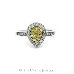 3/4cttw Pear Shaped Yellow & White Diamond Cluster Ring in 14k White Gold