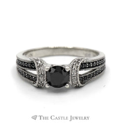 Round Black Diamond Engagement Ring with White and Black Diamond Accents in 10k White Gold Split Shank Setting