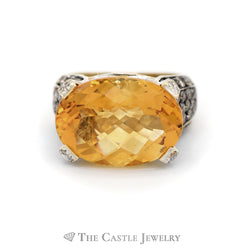 Square Citrine Le Vian Designer Ring with Chocolate & White Diamond Accented Sides in 14k Yellow Gold