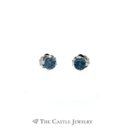 Sparkling Blue Diamond Stud Earrings in 14K White Gold