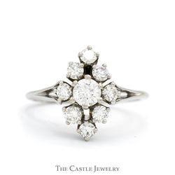 Marquise Shaped Round Diamond Cluster Ring with Split Shank Sides in 14k White Gold