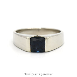 Square Sapphire Solitaire Ring with Polished Sides in 14k White Gold