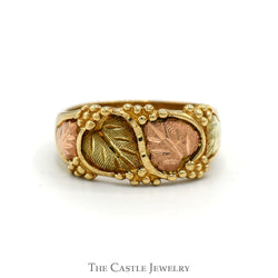 Tri Toned Gold Harley Davidson Ring with Leaf Accented Sides in 10k Yellow, Rose & White Gold