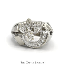 Antique Leaf Style 1/3cttw Old European Cut Diamond Cluster Ring in 14k White Gold