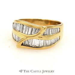 Beautiful Leaf Shaped Channel Set Baguette Cut Diamond Band in 18k Yellow Gold