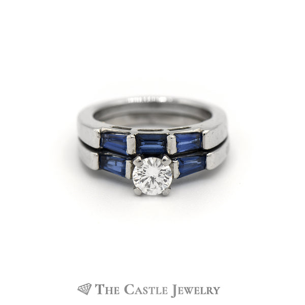Platinum Diamond and Sapphire Bridal Set