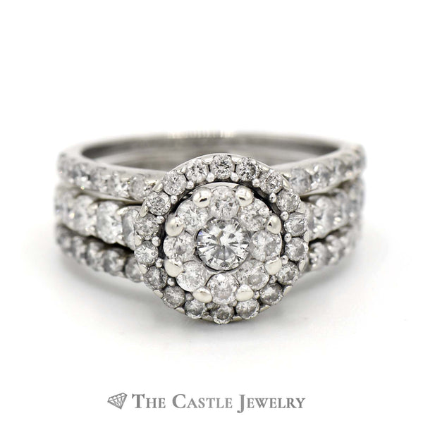 3 Piece 1.5cttw Diamond Cluster Bridal Set in 14k White Gold