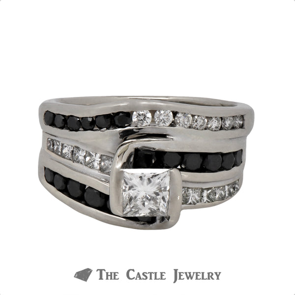 .50ct Princess Cut Bridal Set with Alternating Black & White Diamond Accents