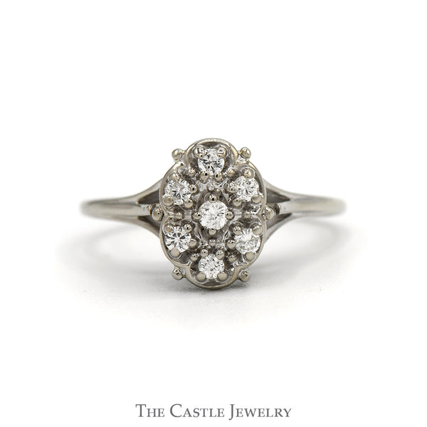 1/4cttw Oval Shaped 7 Diamond Cluster Ring in 14k White Gold