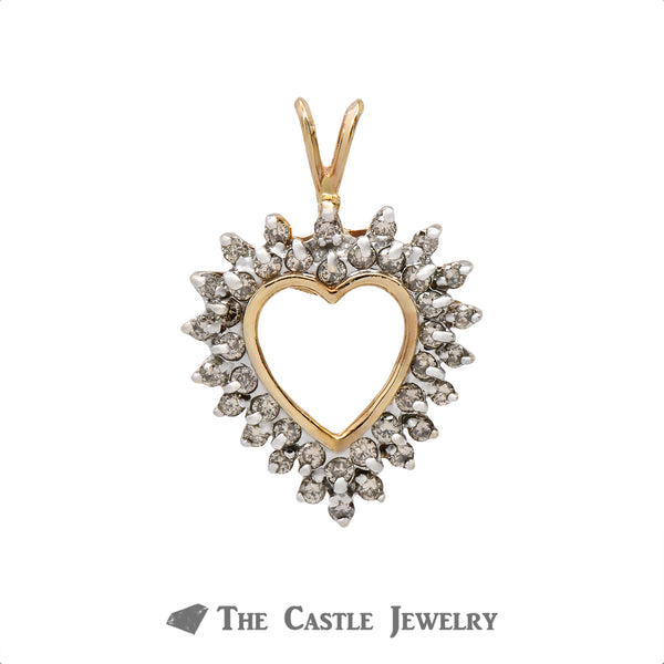 Heart Shaped Pendant Outlined with .75cttw Double Diamond Rows Crafted in 10k Yellow Gold