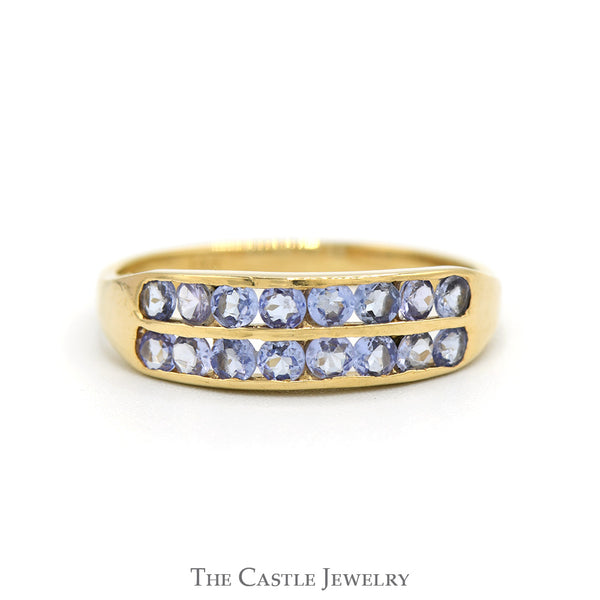 Double Row Channel Set Round Tanzanite Band in 14k Yellow Gold
