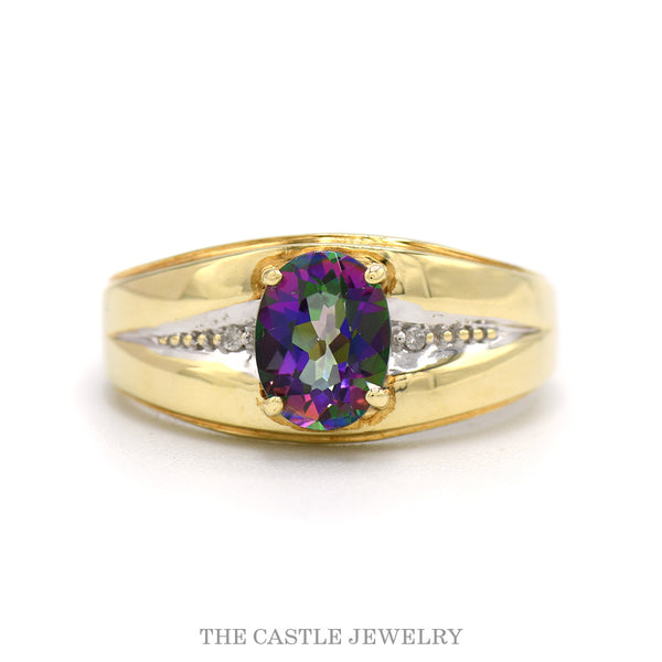 Oval Mystic Topaz Ring with Illusion Set Diamond Accented Sides in 10k Yellow Gold