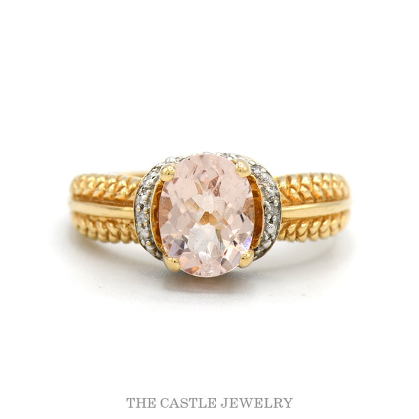14K Yellow Gold Oval Morganite Ring Diamond Accents Vintage Design