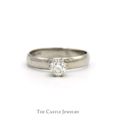 Celebrate your love with this stunning 1/2 ct Diamond Solitaire Engagement Ring, featuring a sleek 3.75mm wide polished band in radiant 14k white gold. The classic solitaire design highlights a brilliant diamond that captures the light with every movement, symbolizing the purity and depth of your commitment. The smooth polished band adds a contemporary elegance, making it a perfect choice for the modern bride. This ring is more than just an accessory; it represents a lifelong promise and a cherished milestone. With its timeless sophistication and captivating sparkle, this engagement ring is sure to leave her breathless and is destined to become an everlasting symbol of your love story. Make your proposal unforgettable with this exquisite piece!