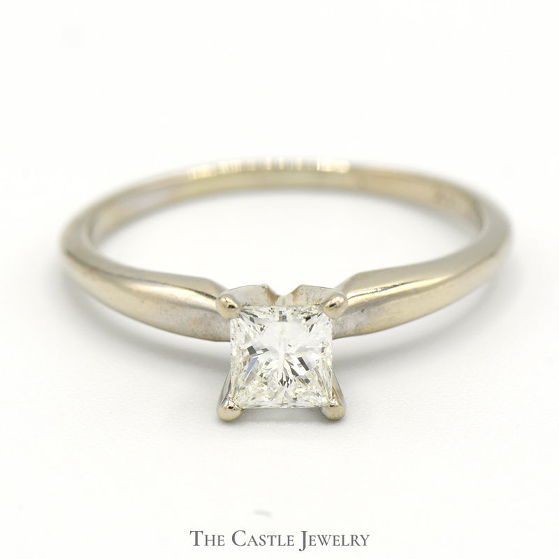 This exquisite Engagement Ring is the ultimate symbol of your everlasting love and commitment. Its sparkling princess-cut diamond is held in a classic 14k white gold four-prong setting, giving it a timeless, elegant look. The breathtaking sparkle of the diamond is sure to capture the attention of all who lay eyes on it, making it the perfect choice for your special someone. Its timeless beauty will last for generations, making it a piece of jewelry that will stay with you through all of life's most special moments.