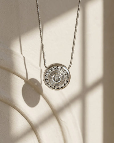 Suspended on a sleek 20-inch snake chain, this pendant hangs at just the right length to make an impression without overpowering a look. Whether you wear it solo as a quiet statement of elegance or layered with other necklaces for something more expressive, it transitions seamlessly from morning to evening with no effort at all — the definition of a forever piece.