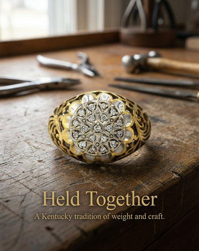Radiate timeless charm with this Kentucky Diamond Cluster Ring. a sparkling masterpiece that celebrates classic elegance. The intricate openwork filigree design frames a stunning cluster of round brilliant diamonds, forming a floral-inspired centerpiece that catches light from every angle. Crafted in solid 10K yellow gold, its ornate details and rich luster evoke the sophistication of vintage artistry while delivering enduring style and beauty.