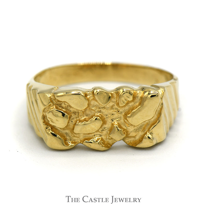 14k Yellow Gold Nugget Style Ring with Grooved Sides