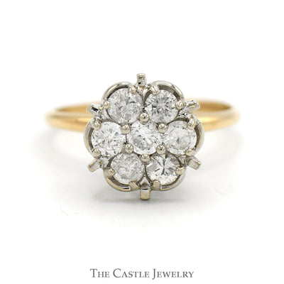Embrace timeless elegance with this stunning 1cttw 7 Round Diamond Cluster Ring, beautifully crafted in luxurious 14k yellow gold. This exquisite piece showcases a magnificent cluster of seven round diamonds at its center, creating a brilliant focal point that sparkles from every angle. The rich yellow gold setting enhances the diamonds' radiance, offering a warm and sophisticated appeal. Perfect for engagement, anniversaries, or as a cherished addition to your jewelry collection, this ring symbolizes love and commitment. Let this captivating diamond cluster ring be a dazzling representation of your unique style and everlasting bond.