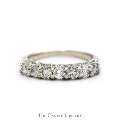 Celebrate your love with this captivating 1cttw 7 Round Diamond Wedding/Anniversary Band, elegantly crafted in 14k white gold. Featuring seven dazzling round diamonds, this ring radiates brilliance and symbolizes your enduring commitment. The luxurious white gold band enhances the sparkle of each diamond, creating a stunning contrast that is perfect for both everyday wear and special occasions. This exquisite piece can be worn alone or stacked with your engagement ring, adding versatility to your bridal set. Make your moments unforgettable with a ring that embodies love and elegance. Honor your journey together—add this timeless band to your collection today!