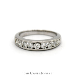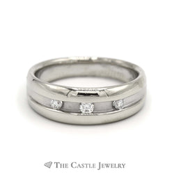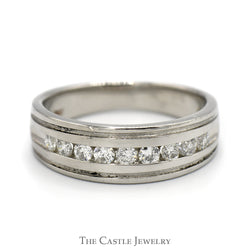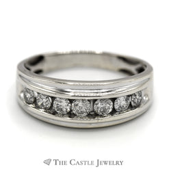 Elevate your style with our Stylish 1CTTW Channel Set 5 Round Diamond Men's Band, meticulously crafted in 14K white gold. This exceptional ring features five radiant round diamonds securely channel set for a sleek, modern look that exudes sophistication. With a total carat weight of 1cttw, the diamonds create a captivating shimmer that effortlessly complements the polished white gold band, making it perfect for engagements, weddings, or as a statement piece for the discerning man. Experience the perfect blend of elegance and masculinity with this timeless bandβan essential addition to any jewelry collection. Make your mark with this stunning piece today!