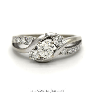 Ignite the spark of love with this exquisite 1cttw Diagonal Three Stone Diamond Engagement Ring, designed to celebrate your unique journey together. Crafted in luxurious 14k white gold, this stunning piece features three dazzling diamonds set diagonally, representing your past, present, and future. The elegant open bypass design is gracefully adorned with shimmering diamond accents, enhancing the ring's brilliance and allowing light to dance beautifully off each stone. This contemporary design combines sophistication with a bold statement, making it perfect for the modern bride. Say "yes" to a lifetime of love with a ring as extraordinary as your story, destined to be cherished forever.