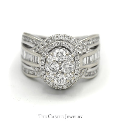 Elevate your elegance with our breathtaking 2cttw Oval Cluster Ring, a masterpiece of design and craftsmanship. This stunning ring features an exquisite oval diamond cluster that forms the focal point, radiating brilliance and sophistication. Surrounding the central cluster are multiple rows of baguette and round diamond accents, meticulously arranged to maximize sparkle and visual appeal. The harmonious blend of diamond cuts creates a dazzling interplay of light, making every angle a showstopper. Perfectly set in a luxurious band, this ring is a statement of opulence and timeless beauty, ideal for the most memorable occasions. Experience unparalleled luxury with this exquisite diamond cluster ring.