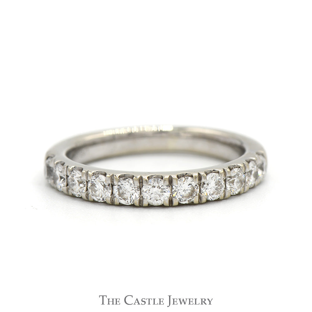 Celebrate your forever love with this exquisite 3/4cttw lab-grown diamond wedding band, meticulously crafted in 14k white gold. This stunning piece showcases a dazzling array of lab-grown diamonds, each ethically sourced and designed to radiate brilliance and clarity, making it an eco-friendly choice for the modern couple. The harmonious blend of diamonds and the sleek white gold setting create a timeless elegance that complements any engagement ring perfectly. Ideal for stacking or wearing solo, this wedding band represents an enduring promise and style. Make your special moments shine with this beautiful symbol of love that you can treasure for a lifetime!
