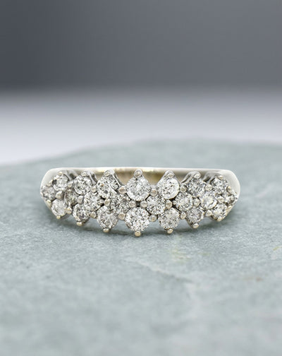 This 10k white gold diamond cluster band is the kind of ring that catches every glimmer of light and never lets go. Featuring 3/4 cttw of round diamonds arranged in a stunning cluster design, the stones sit closely together to create the appearance of one brilliant, continuous sparkle across the band. The cool tone of the white gold perfectly complements the diamonds, giving the ring a sleek, modern elegance that works beautifully on its own or stacked alongside your favorite pieces.