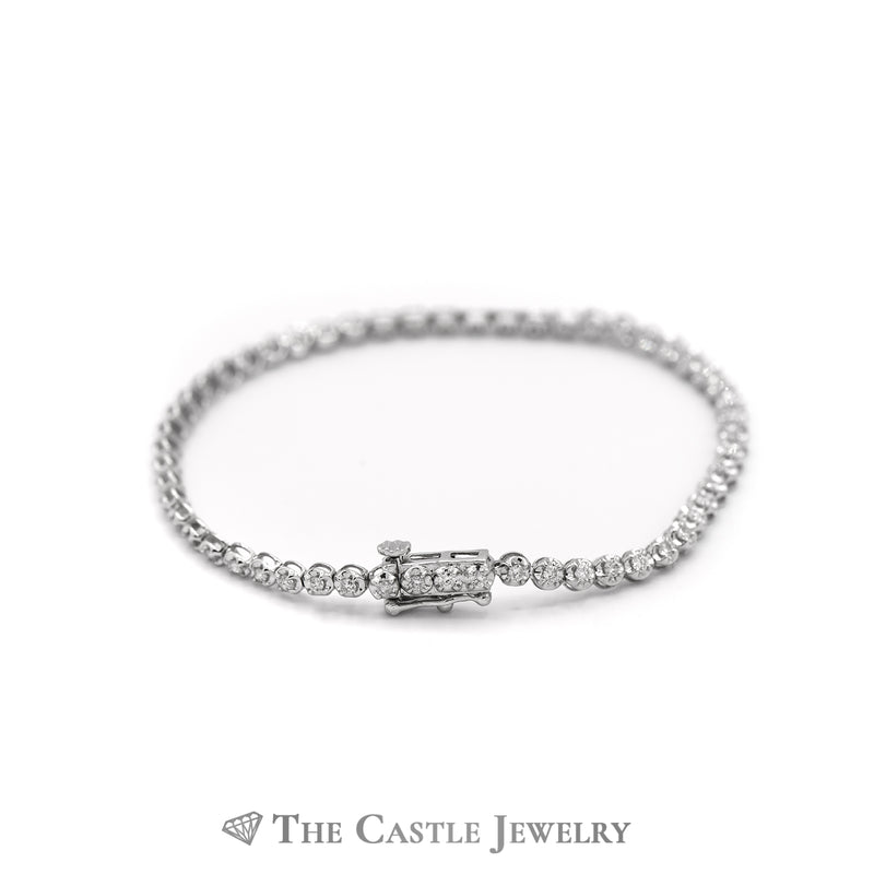 This bracelet is elegant on its own or paired with other bracelets! This stunning tennis bracelet features 55 round brilliant cut diamond links with a safety clasp!