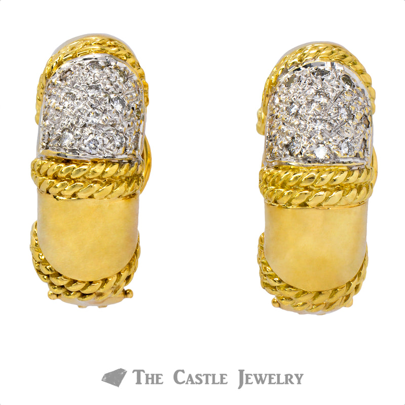 Sparkle and shine with these designer earrings! These Cassis hoop earrings feature .50cttw center of round brilliant cut diamonds. The diamonds on these heavy set earrings are accented by several rope bars throughout the earrings. Crafted in 18K yellow gold, these earrings would make the perfect present.