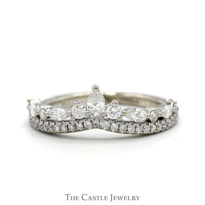 Elevate your elegance with our Crown Designed 1/2cttw Pear Cut & Round Diamond Neil Lane Designer Band, masterfully crafted in 14k white gold. This exquisite band features a regal arrangement of pear cut and round diamonds, totaling 1/2 carat, meticulously set to form a crown-inspired design. The brilliance of the diamonds contrasts beautifully with the sleek, polished white gold, creating a piece that exudes sophistication and timeless beauty. Designed by the renowned Neil Lane, this band is perfect for adding a touch of royalty to any occasion or complementing your bridal set with unparalleled elegance.