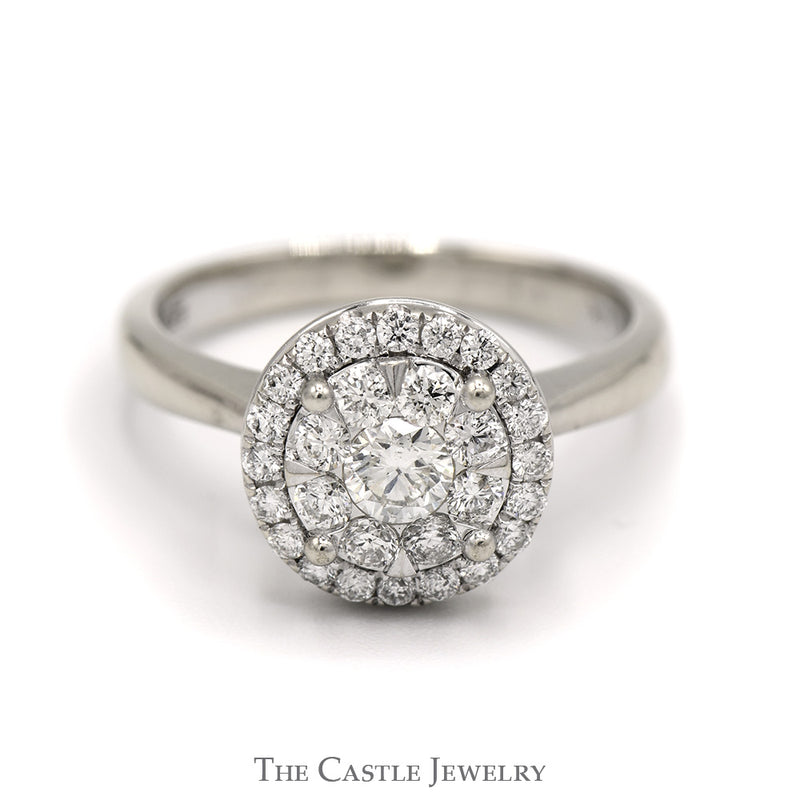 Discover the ultimate symbol of love and commitment with this exquisite Effy Designer Diamond Engagement Ring. Masterfully crafted in lustrous 14k white gold, this ring features a dazzling center diamond that is enhanced by a stunning double diamond halo, adding an extraordinary sparkle from every angle. The intricate design of the halos creates a celestial glow that magnifies the brilliance of the centerpiece. Each carefully selected diamond is set to perfection, revealing the meticulous attention to detail that the Effy brand is renowned for. With its timeless elegance and luxurious finish, this engagement ring is not just a piece of jewelry, but an heirloom waiting to be cherished for generations to come. Make your proposal unforgettable with this breathtaking piece that embodies love's purest sentiments.